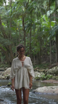 The Soluna Kaftan Dress is designed for effortless beauty and everyday comfort. Made from soft, breathable cotton, this lightweight mini dress drapes naturally with its flowy batwing sleeves and gathered waistline that flatters every shape. The adjustable ties at the front and back add a touch of bohemian charm while giving you a custom fit.